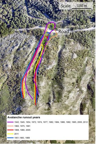 I pericoli naturali gravitazionali come valanghe di neve, cadute di massi, frane superficiali e attività vulcanica rappresentano un rischio per le comunità montane in tutto il mondo. In particolare, laddove la documentazione su questi processi è rara, le decisioni sulla gestione del rischio e la pianificazione dell'uso del suolo devono basarsi su una varietà di altre fonti, tra cui vegetazione, dati sugli anelli degli alberi e modelli che processino i pericoli naturali. Abbiamo utilizzato una combinazione di questi metodi per valutare la dinamica dei pericoli naturali con un focus sulle valanghe di neve a Valle Las Trancas, nella regione del Biobío in Cile. Lungo questa valle, i pericoli naturali minacciano non solo la popolazione umana locale, ma anche i numerosi turisti attratti dalle attività ricreative all'aperto. Data la scarsità regionale di documentazione comprovata, sono stati applicati metodi sugli anelli degli alberi per ricostruire la storia locale delle valanghe di neve e degli eventi di colata detritica, che sono i più importanti processi meteorologici nei rispettivi percorsi. Una versione recente del modello Rapid Mass MovementS (RAMMS), che include influenze della struttura forestale, è stata utilizzata per calcolare diversi parametri di valanga come distanze di runout e pressioni massime, prendendo in considerazione la presenza o l'assenza di foresta lungo i binari e modellazioni dei diversi periodi di ritorno. I nostri risultati mostrano che le foreste di latifoglie di Nothofagus locali contribuiscono a una riduzione delle distanze di runout delle valanghe e della pressione di impatto sulle infrastrutture attuali, costituendo così una preziosa misura per ridurre il rischio di catastrofi per gli ecosistemi, la quale può sostituire o integrare altre misure tradizionali come gli sgomberi di neve.