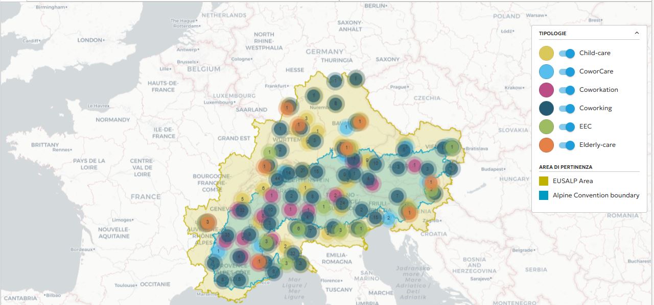 Nell’ambito del progetto europeo “COWORCare. Coworking with children&elderly in the Alps”, il Polo UNIMONT dell’Università degli Studi di Milano lancia una mappa che censisce, nelle aree rurali e montane dell’arco alpino, gli spazi di coworking, coworkation e coworcare, oltre agli enti privati di assistenza a essi circostanti nel raggio di 10km. Il progetto si rivolge alle famiglie che lavorano nei territori montani e rurali dell’area EUSALP, con l’obiettivo di sostenere la genitorialità e l’assistenza a famigliari anziani a carico, migliorando la qualità della vita lavorativa e riducendo il pendolarismo.