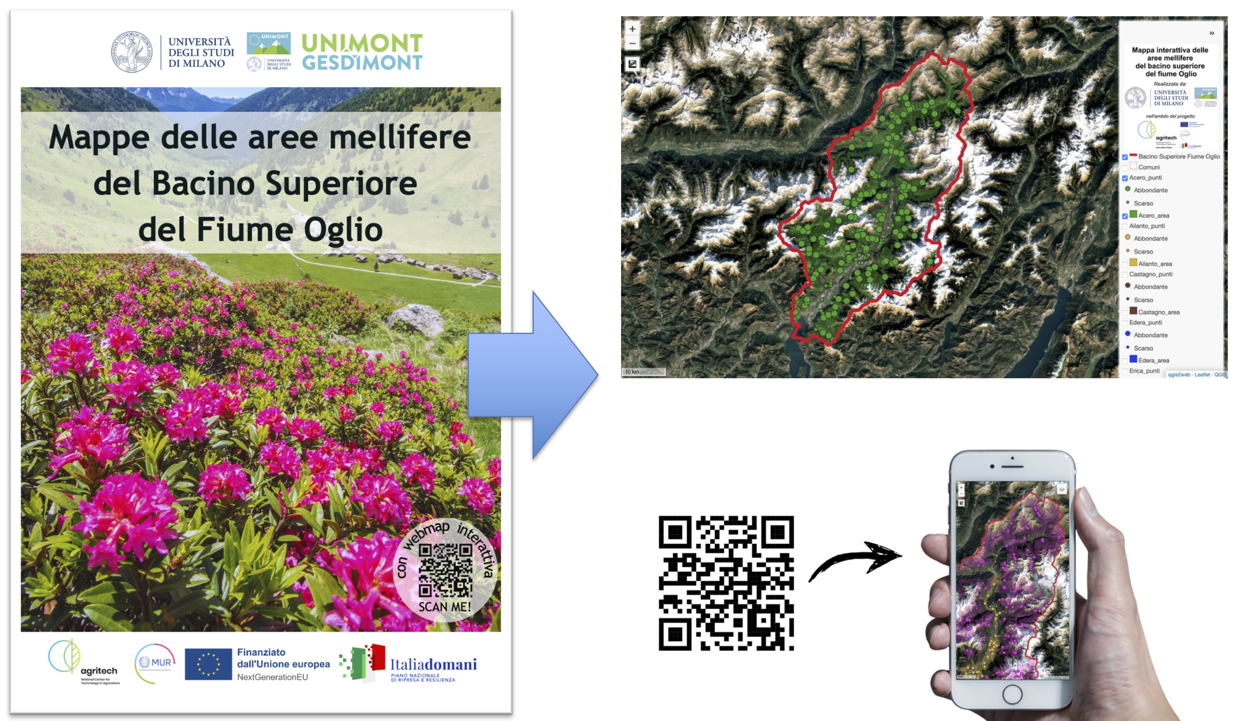 I ricercatori di UNIMONT, nell'ambito del progetto Agritech, hanno mappato la distribuzione delle principali piante mellifere presenti in Val Camonica (BS) e Val di Scalve (BG) (da cui è possibile produrre miele uniflorale) e, in collaborazione con botanici e apicoltori locali, hanno creato una serie di mappe di distribuzione di tali specie che possono essere consultate anche digitalmente attraverso webmap interattive fruibili gratuitamente da pc e smartphone.