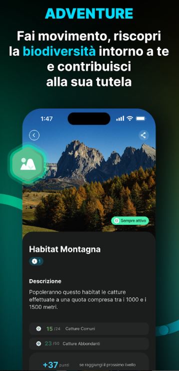 App che permette di esplorare la flora e la fauna delle aree montane e alpine, contribuendo al monitoraggio della biodiversità locale attraverso fotografie e identificazioni sul campo.