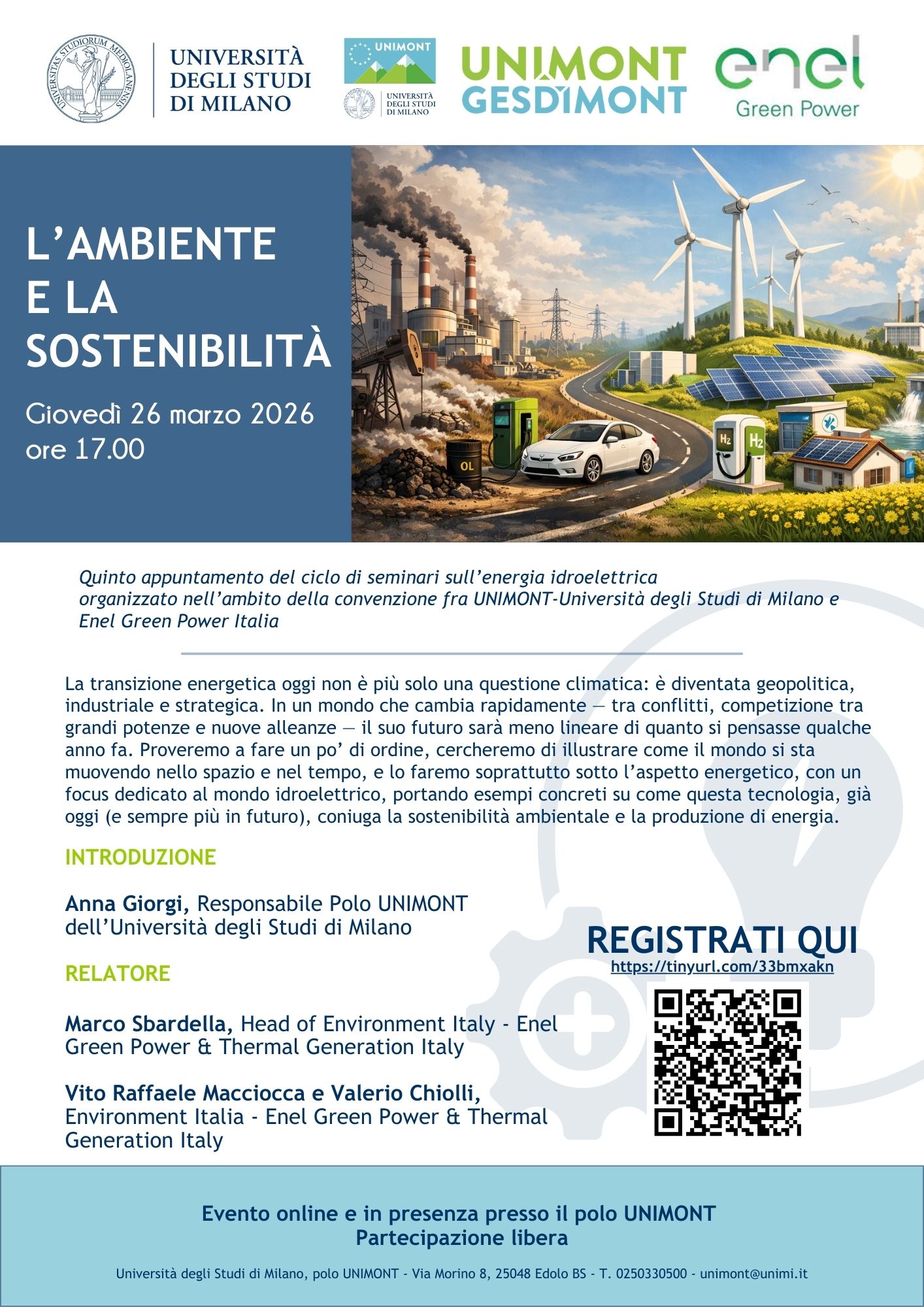 Quinto appuntamento dedicato all’energia idroelettrica organizzato nell’ambito della convenzione fra UNIMONT, Polo dell'Università degli Studi di Milano, e Enel Green Power Italia – Unità Territoriale di Cedegolo.