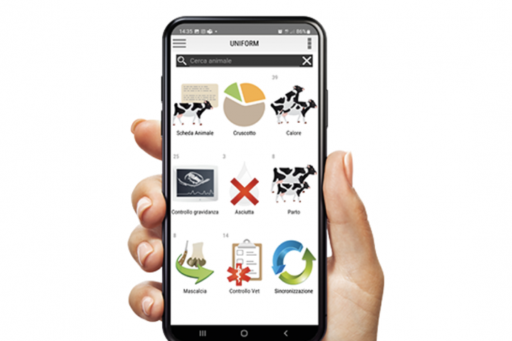 Software per la gestione degli allevamenti da latte con funzioni di tracciamento, notifiche e mappatura in campo.