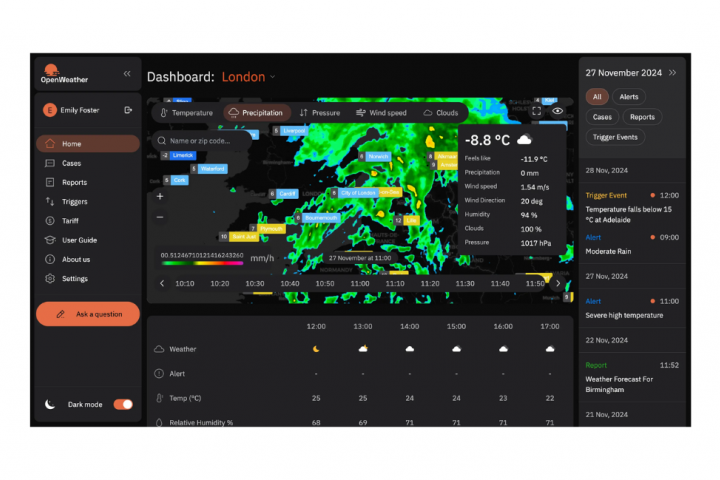 Piattaforma che fornisce dati meteorologici in tempo reale, dati storici e previsioni di tutto il mondo.