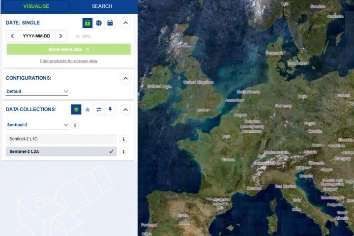 Strumento web gratuito per visualizzare, analizzare e scaricare immagini satellitari della Terra.